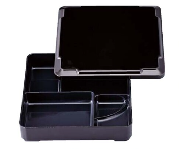 - > 【耐熱ABS樹脂】7寸戦国弁当 新溜(内黒) <固定仕切> 2-704-4 215*215*50(mm)【代引き不可】