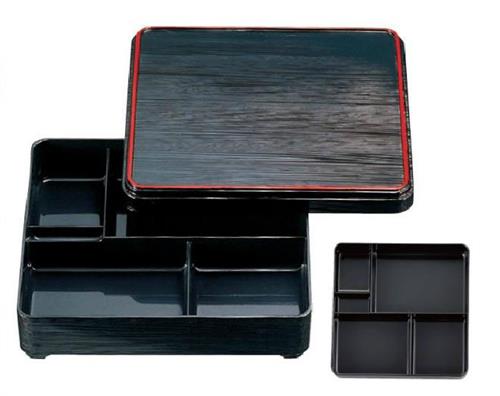 - > 【ABS樹脂】8寸角ヘギ目弁当 黒天朱 内黒 <固定仕切> 商品番号:2-703-9【代引き不可】