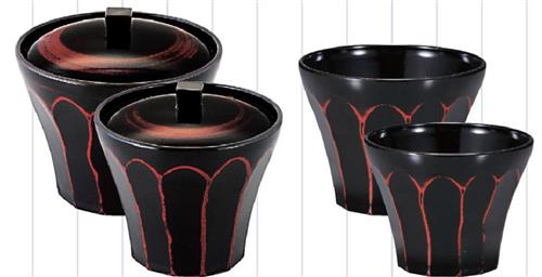 - > 【耐熱ABS樹脂製】荒彫小町カップ 3.1寸 曙内黒 親・蓋(写真 左奥) 2-225-13 φ94*H91(mm) 【代引き不可】