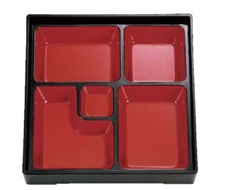- > 【ABS樹脂】【松花堂】8.5寸木目松花堂 黒渕朱 内塗無 内黒 親・蓋 1個 DX幕の内仕切内朱天黒付 商品番号:2-533-1-534-9【代引き不可】