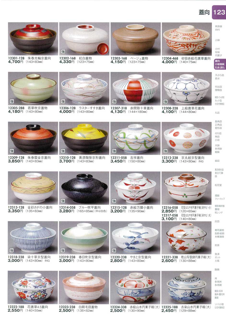 - > 【陶里】 123 円菓子・蓋向・煮物碗【代引き不可】