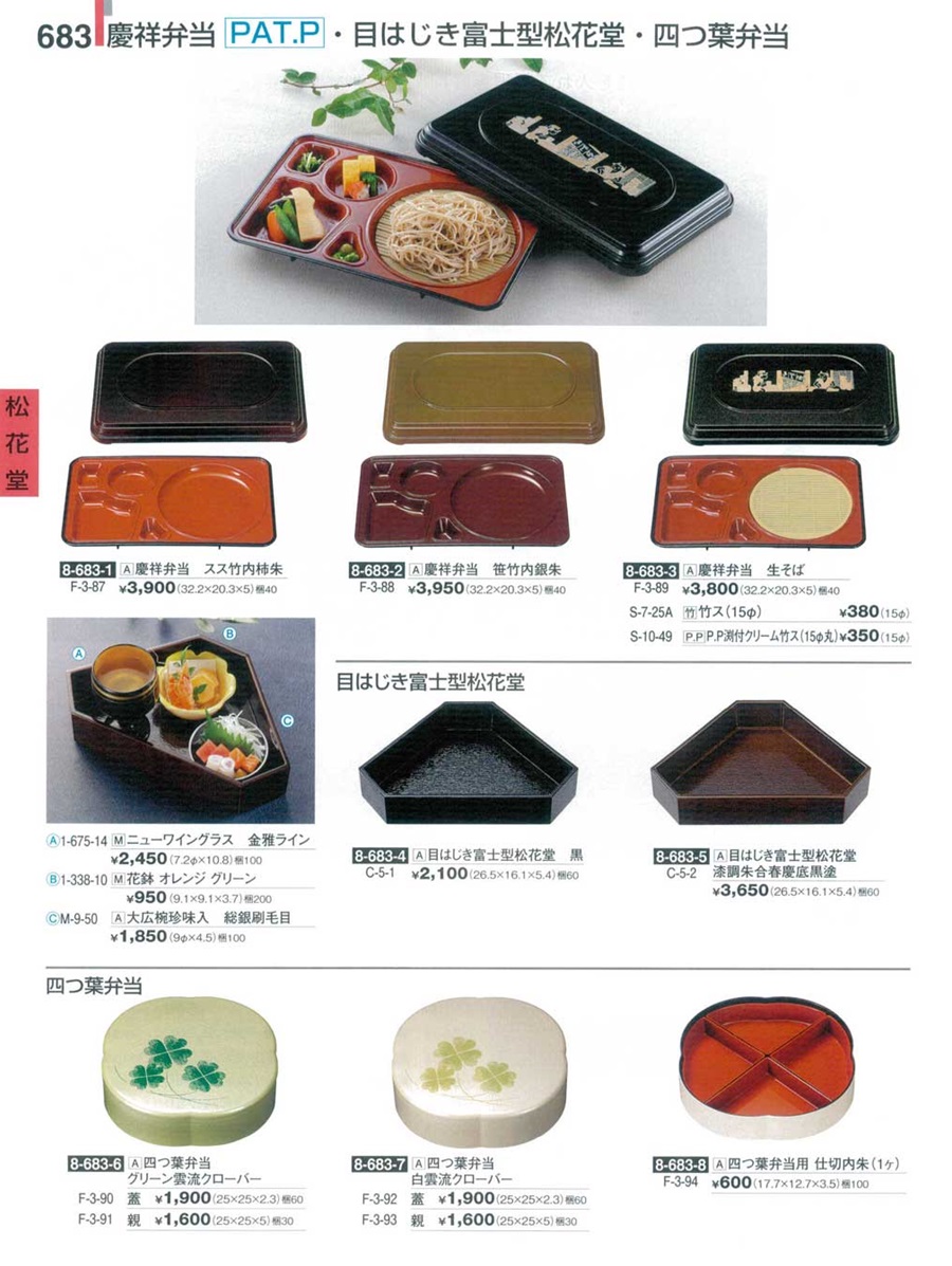 - > 【割烹漆器】 683 慶祥弁当・目はじき富士型松花堂・四つ葉弁当【代引き不可】