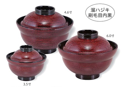 - > 【耐熱ABS樹脂】 6.0寸かがみ椀(大丼) 溜ハジキ刷毛目 内黒 親・蓋 【写真手前右】 2-299-9 【代引き不可】
