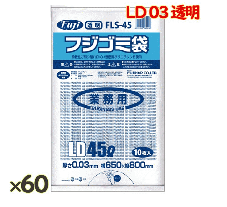 - > フジゴミ袋 LD 45L 03 透明600 (10 枚 *60 袋)/ケース*3ケース/ケース*3ケース