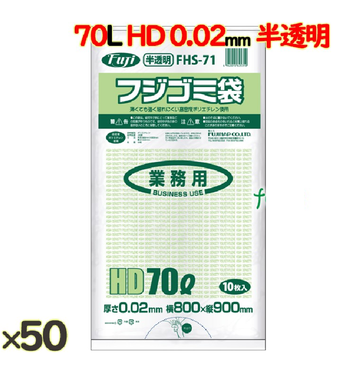 - > フジゴミ袋 HD 70L 02 半透明500 (10 枚 ×50 袋)/ケース*3ケース