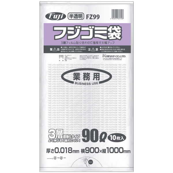 - > フジゴミ袋 3 層 90L 018 半透明600(10 枚 *60 袋)/ケース*3ケース