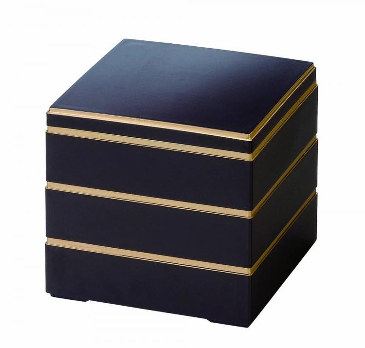 - > 10セット 重箱 3段 | 6寸校倉三段重 黒渕金 福井クラフト