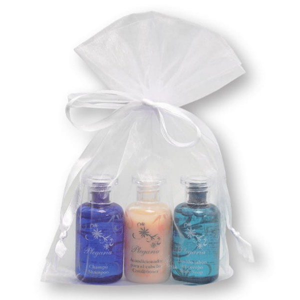 セット内容オーガンジー袋(きんちやく袋)入り:シャンプー、コンディショナー、ボディソープ