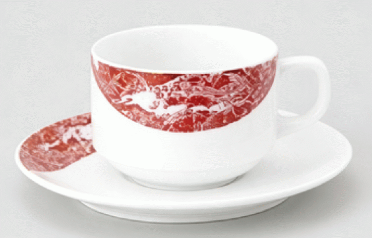 - > 10個/セット スタック兼用 レッド 碗+受皿